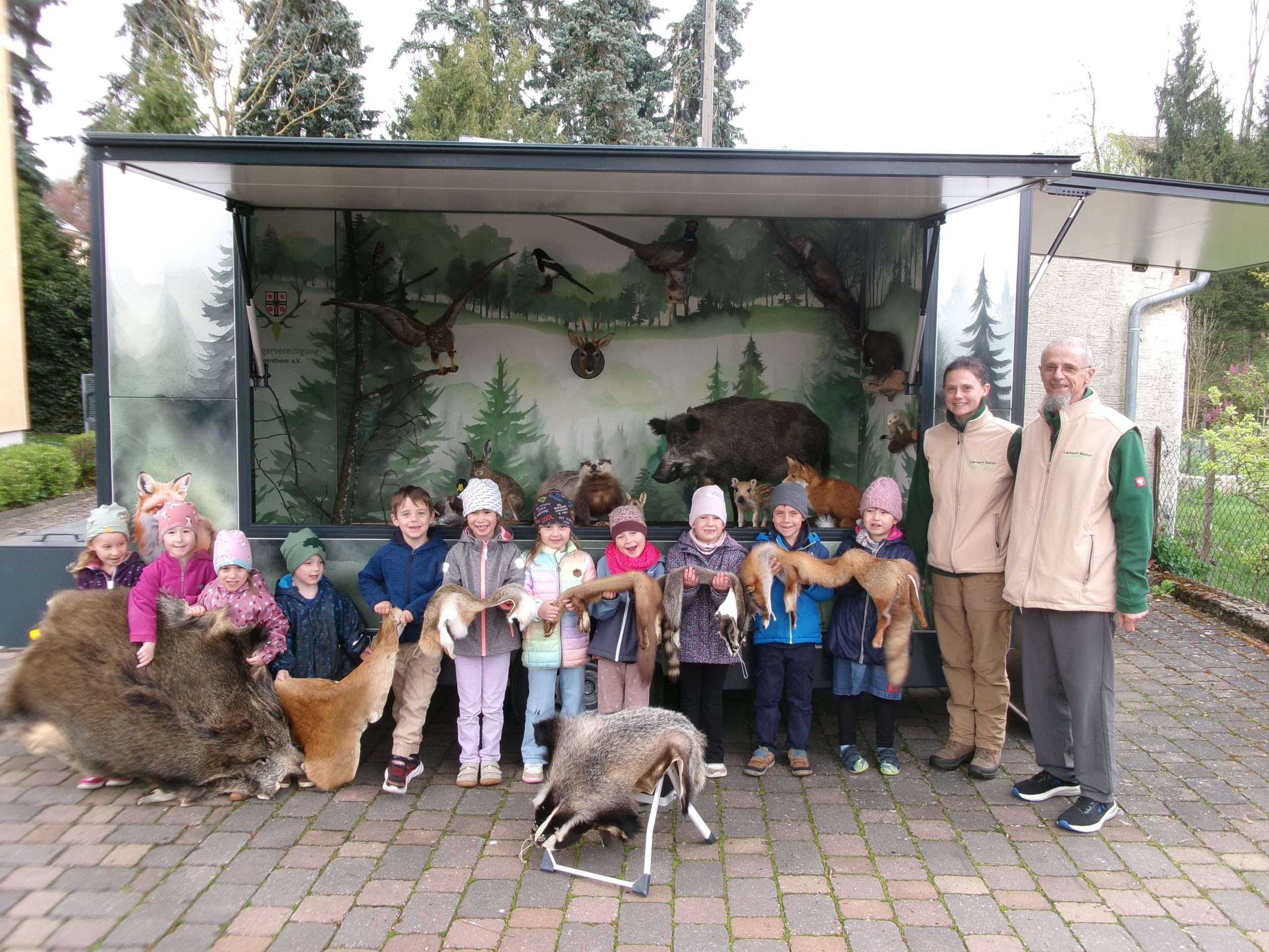 Am Dienstag, 21.4.2026 waren Frau Schütz und Herr Di Noto von der Kreisjägervereinigung Mergentheim e.V. zu Gast im Kindergarten. Sie hatten den Anhänger “Lernort Natur”...