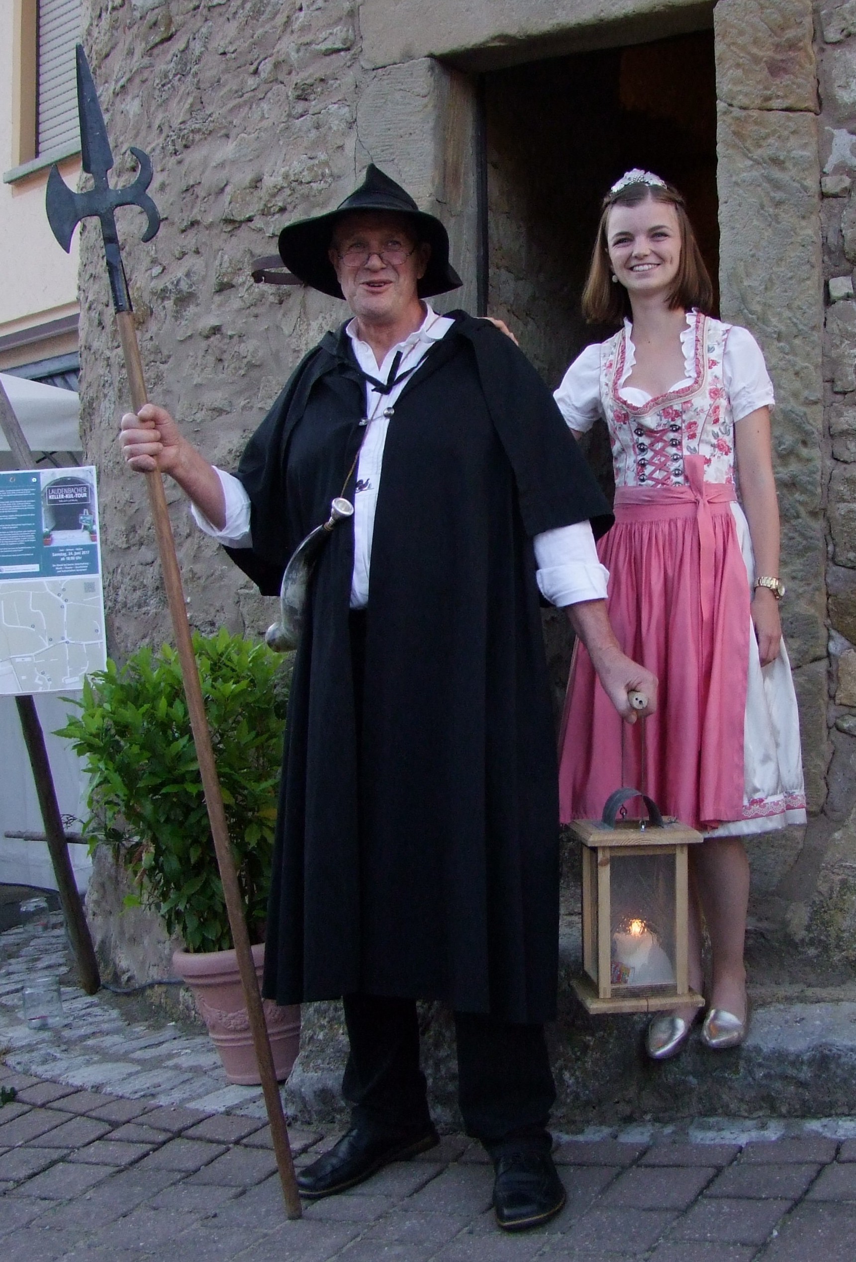 - Auch die Markelsheimer Weinkönigin erfuhr aus dem Mund des Nachtwächters so allerhand über die Historie von Laudenbach