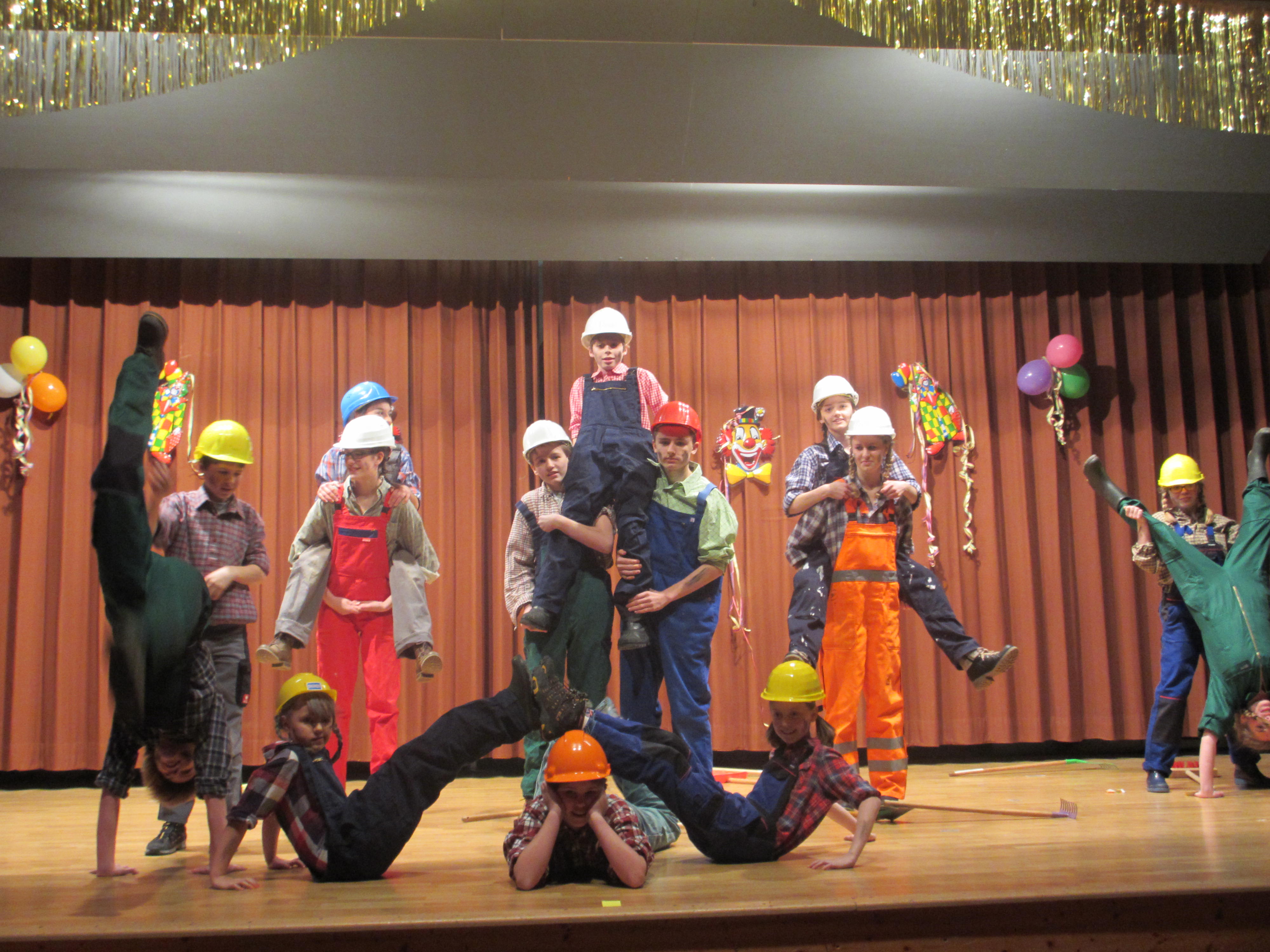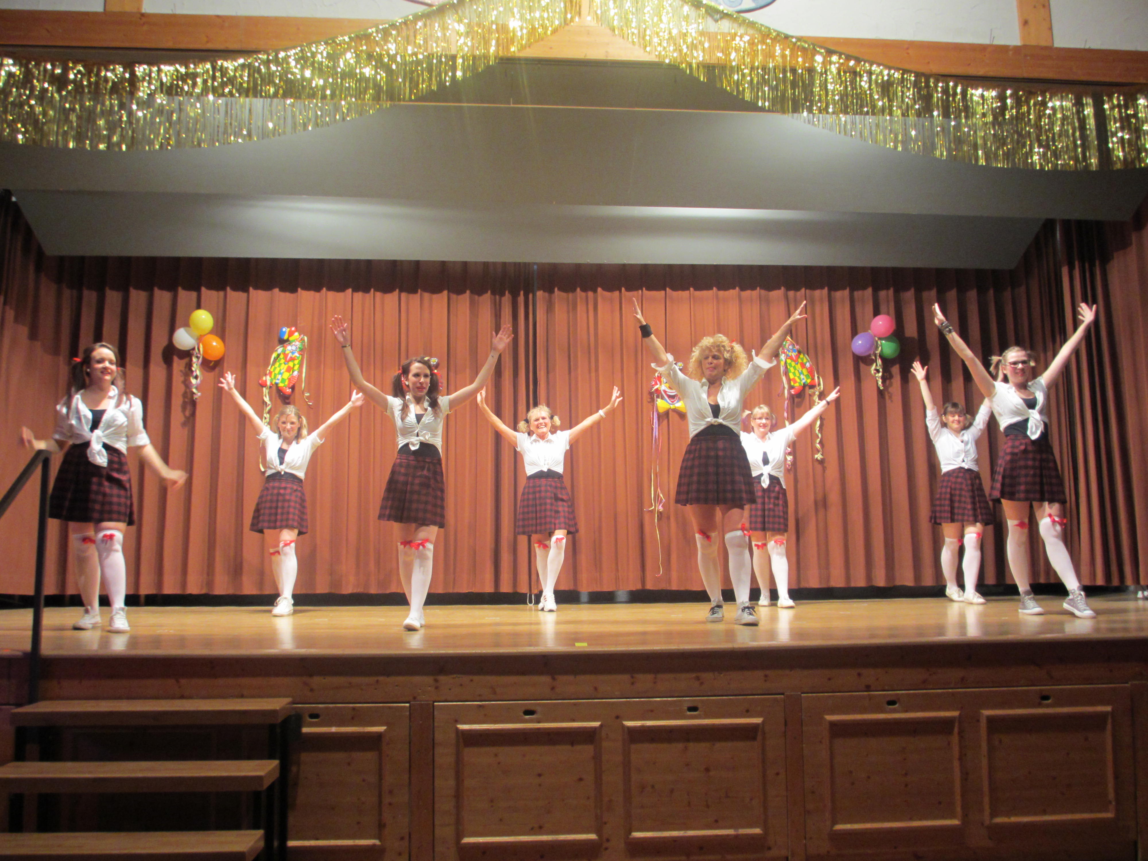 Mit der TSV-Jugend als „Bauarbeiter“ nahm der Abend dann so richtig Fahrt auf. Unter der Choreographie von Veronika Leifeling und Leonie Wirth und dem Titel „Play hard – work hard“ zeigte die Gruppe was sie so tänzerisch alles drauf haben. Mit dem Samba Karneval in Rio trug die Rope Skiping Gruppe weiter zur guten Stimmung bei. Ein Aushängeschild seit Jahren beim TSV-Faschingsgeschehen ist auch die Aerobicgruppe unter der Leitung von Silvia Gründel und Pia Emmert. Nach dem einfühlsamen Hit „She likes the Wind“ überzeugten sie dann mit „Crazy Girl“ als sexy Schulmädchen verkleidet ihre vielen Fans.