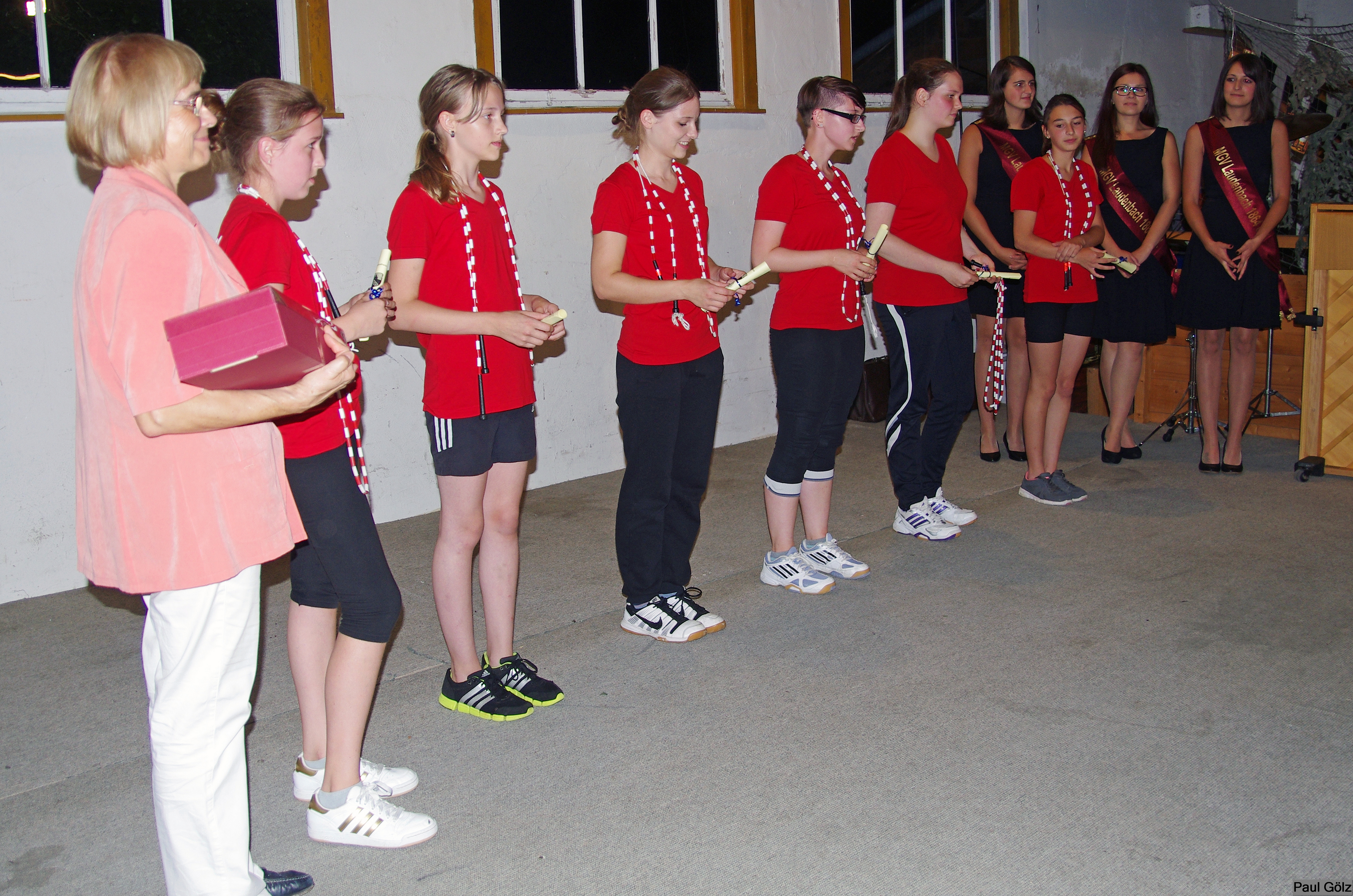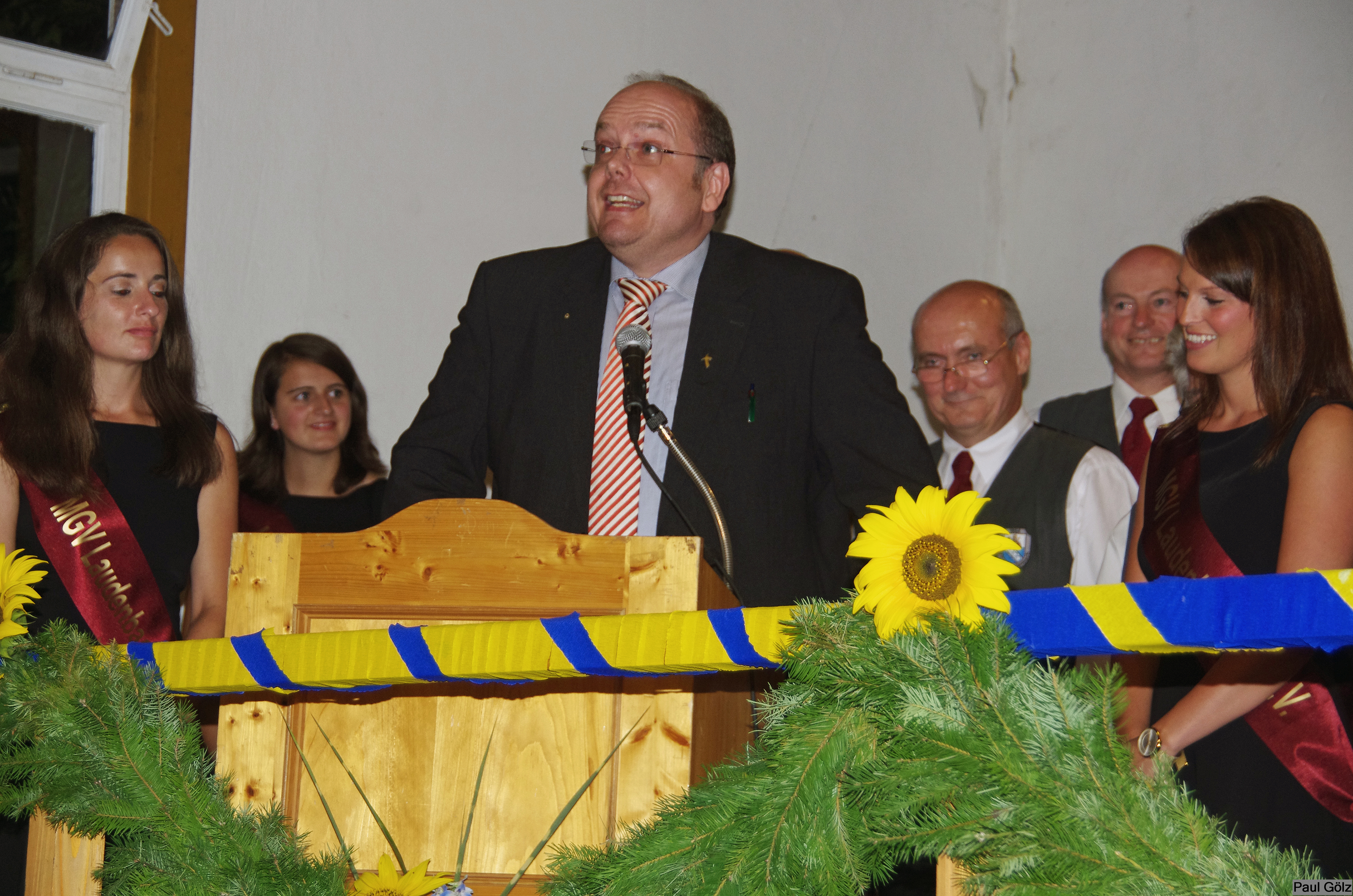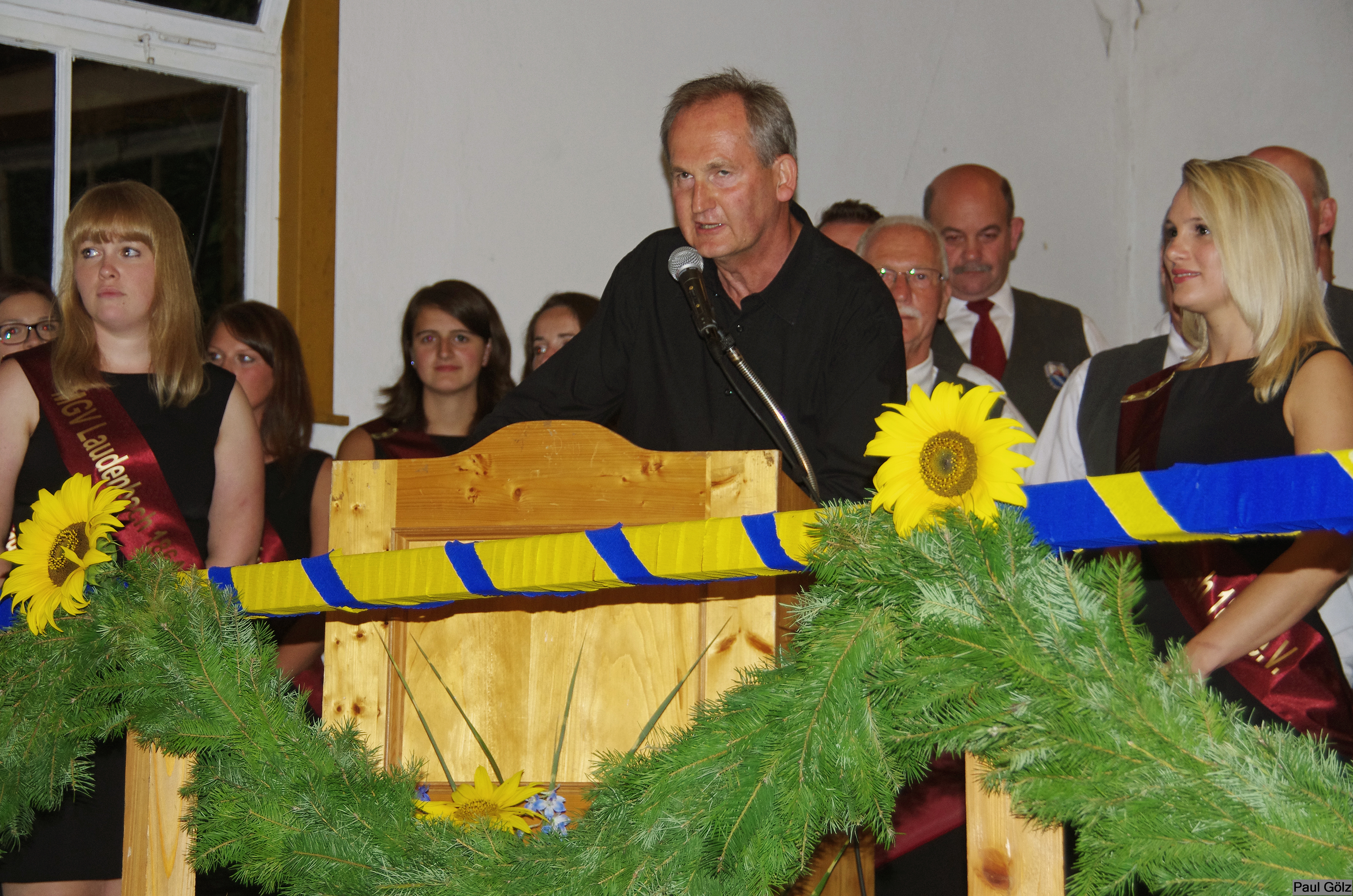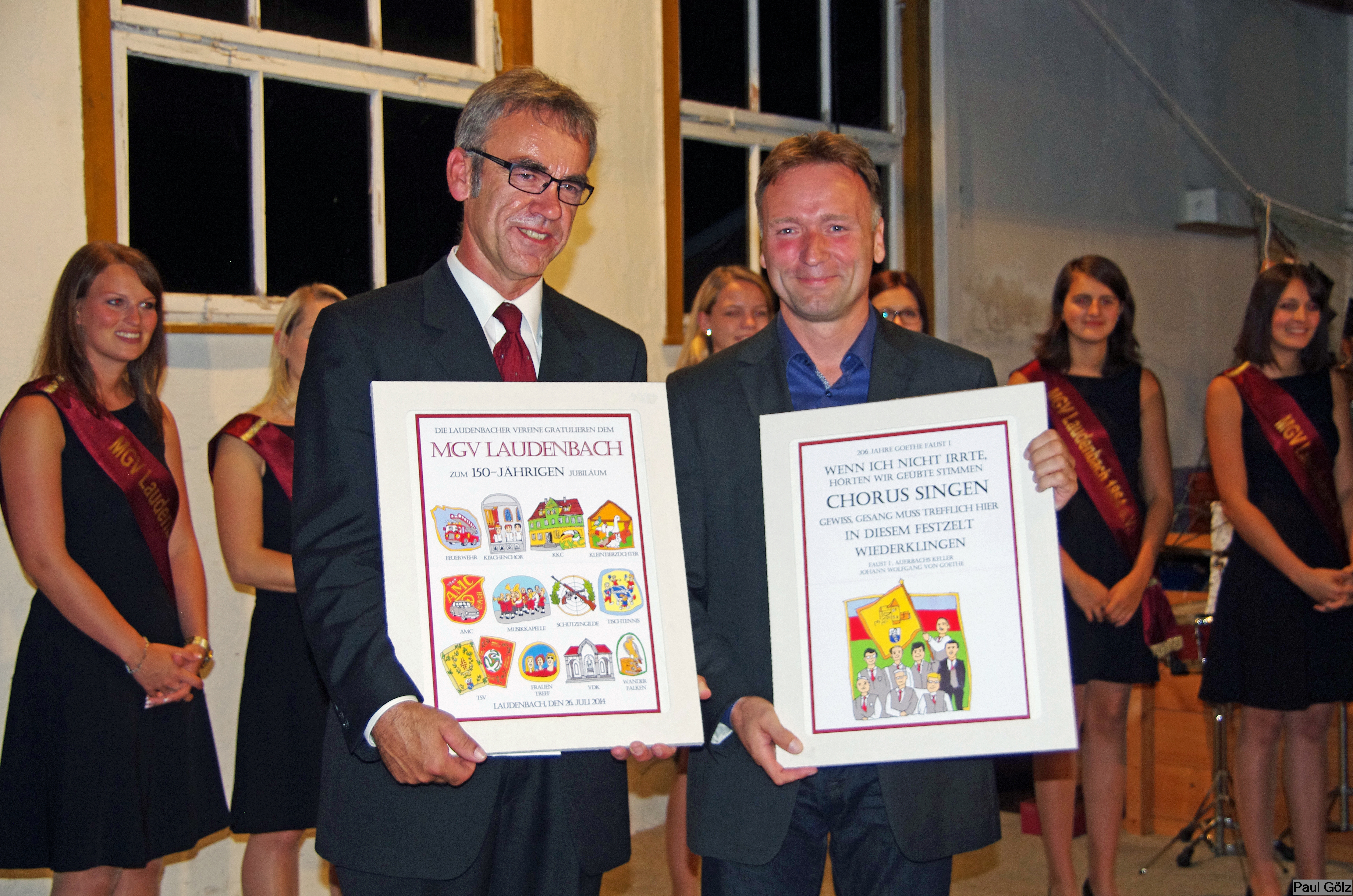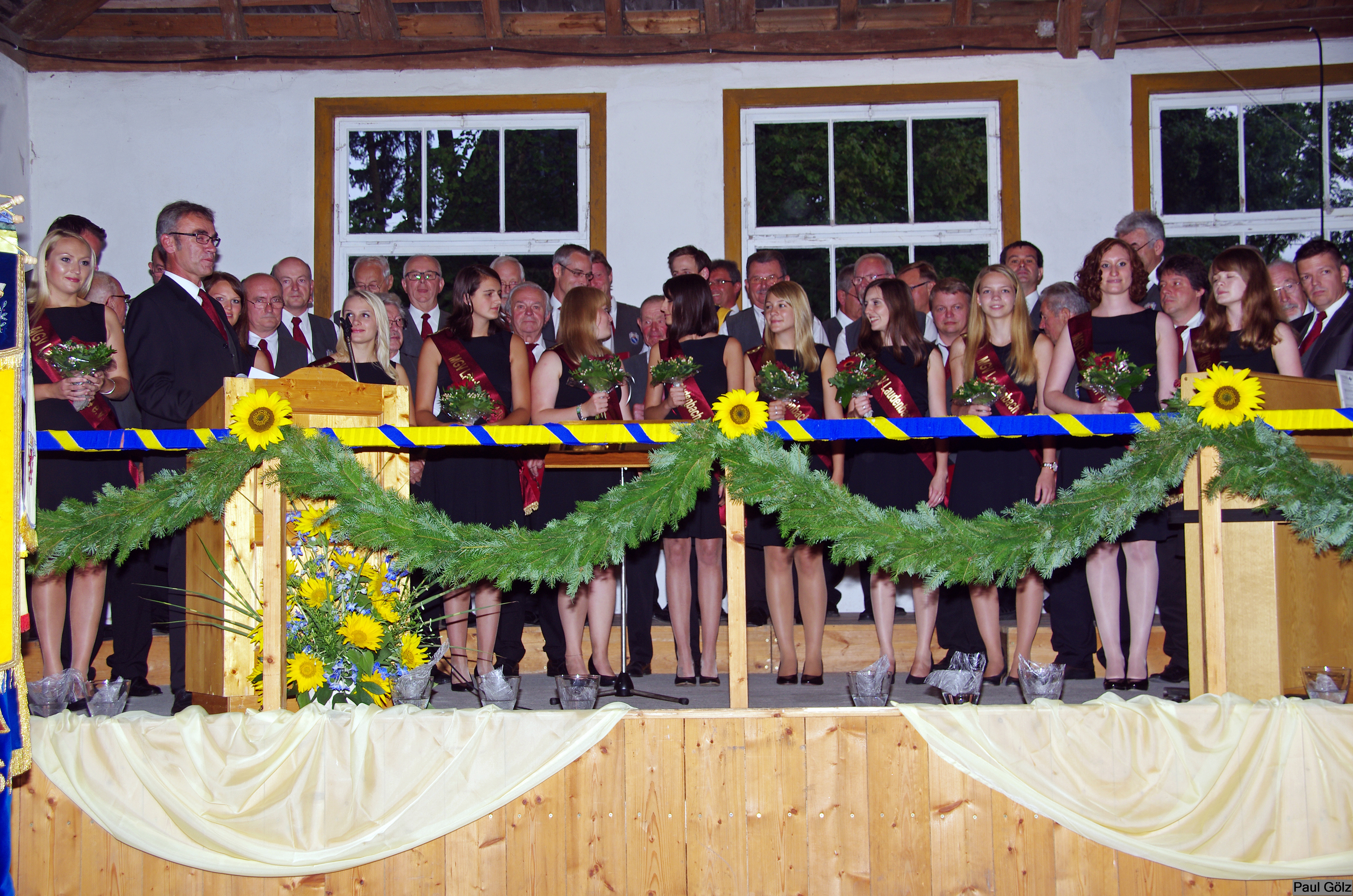 - Festdamen umrahmen den Jubelverein und hören aufmerksam zu