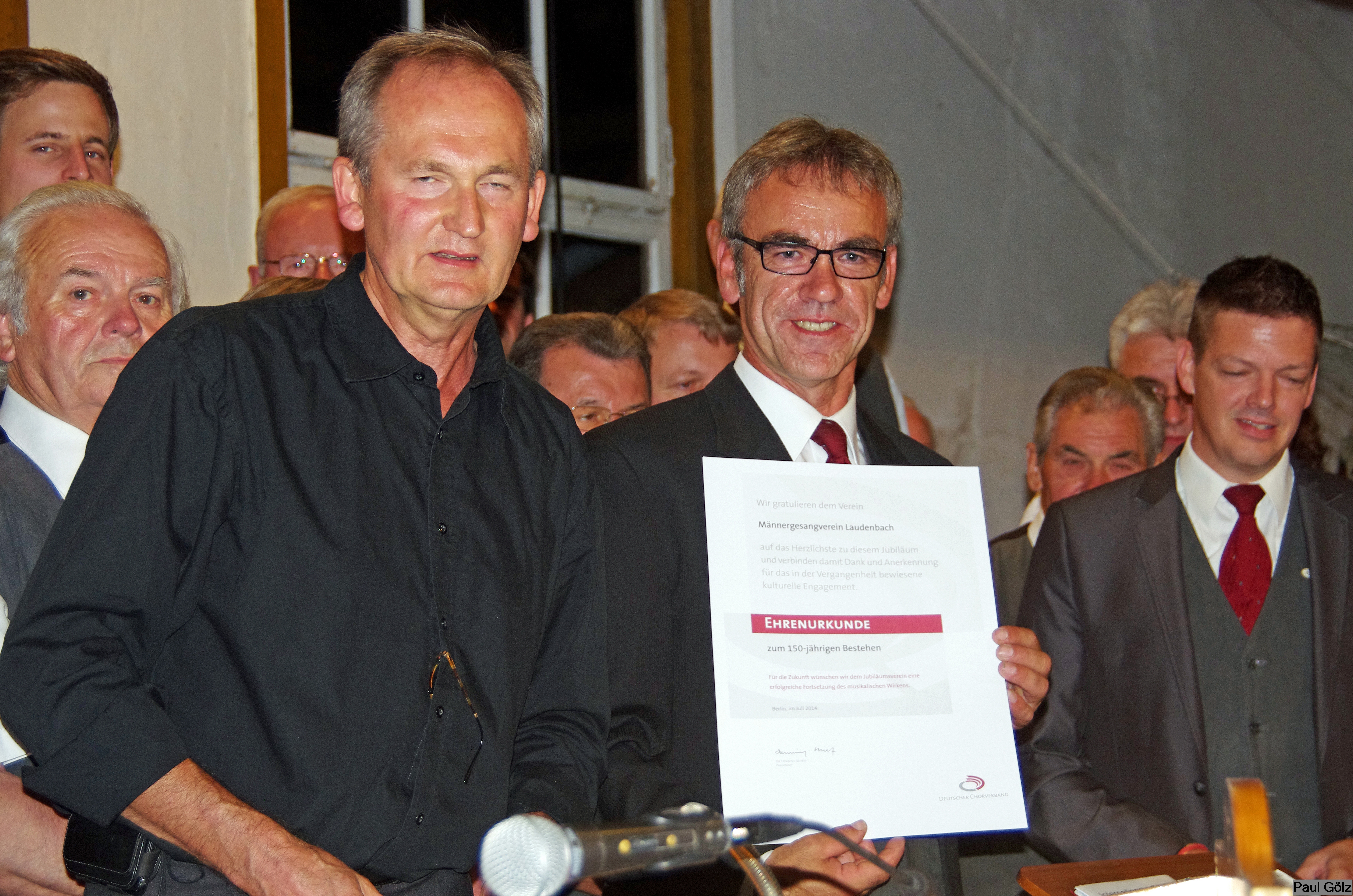 - Gerhard Hauf überreicht die Urkunde zum Jubiläum vom Deutschen Chorverband