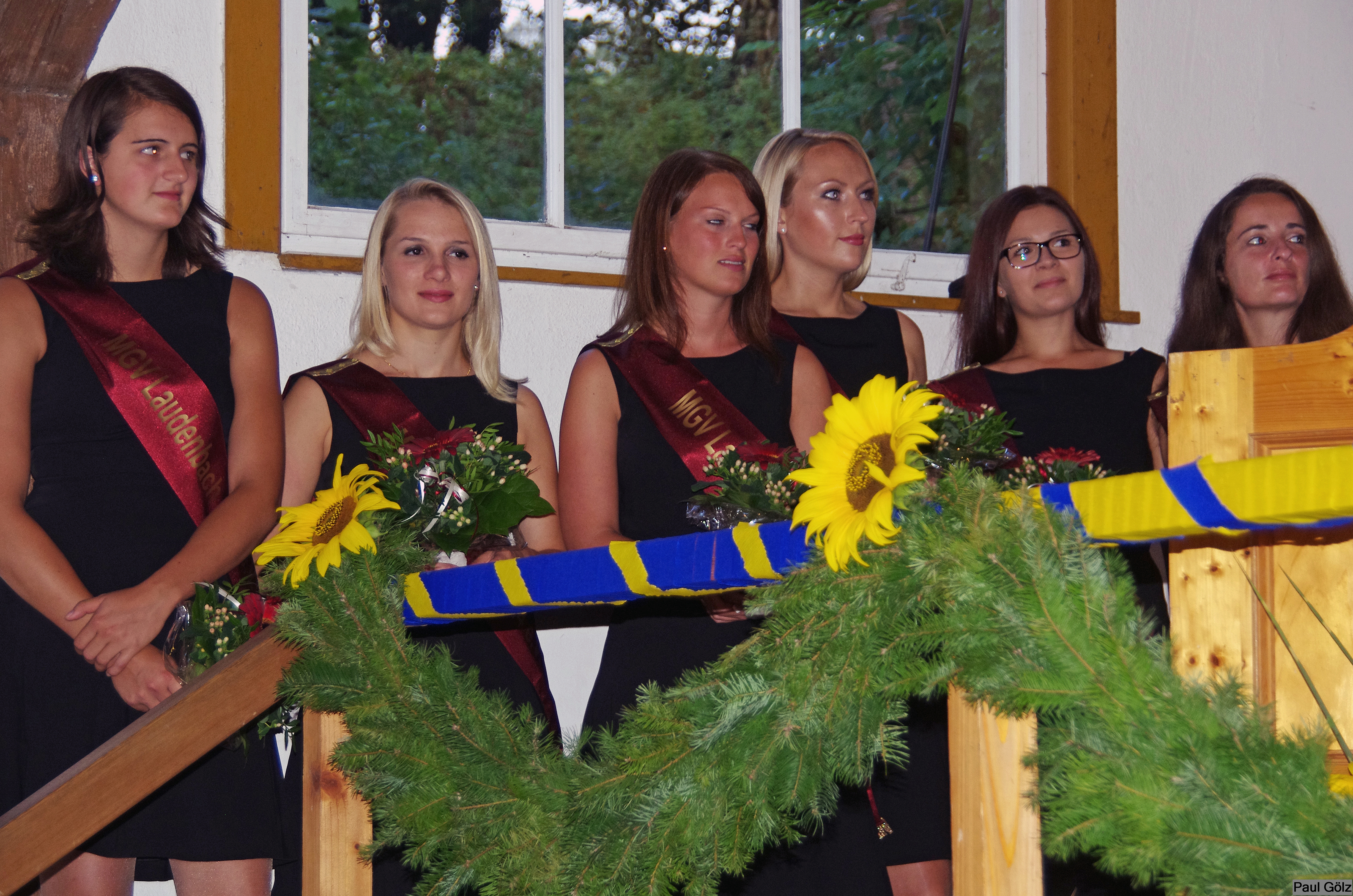 - Chorleiter Nikolai Metzger mit Bruder Matthias flankiert von Festdamen
