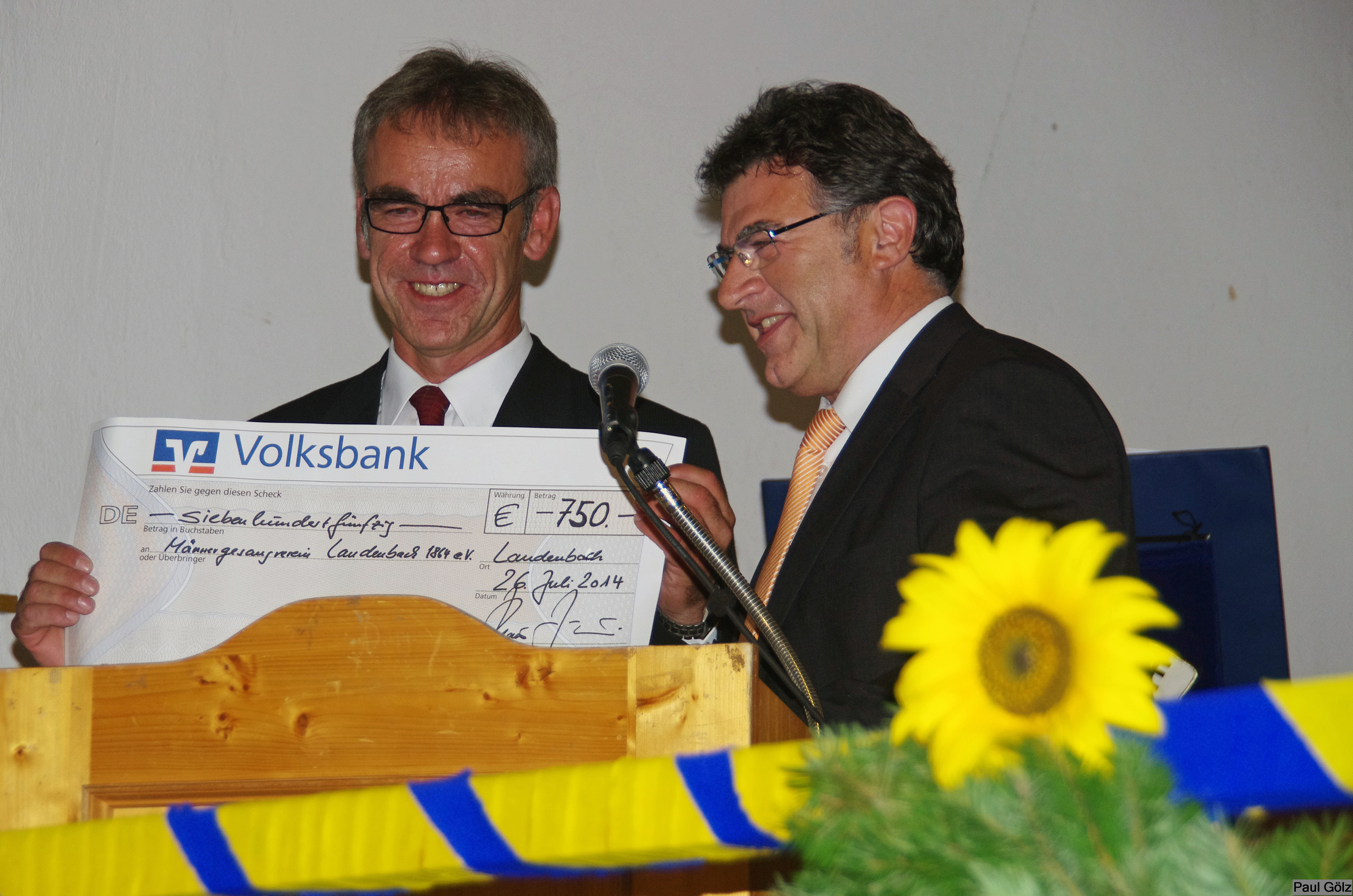 - Bürgermeister und Schirmherr Klaus Kornberger gratuliert dem Jubiläumsverein und überreicht einen Scheck