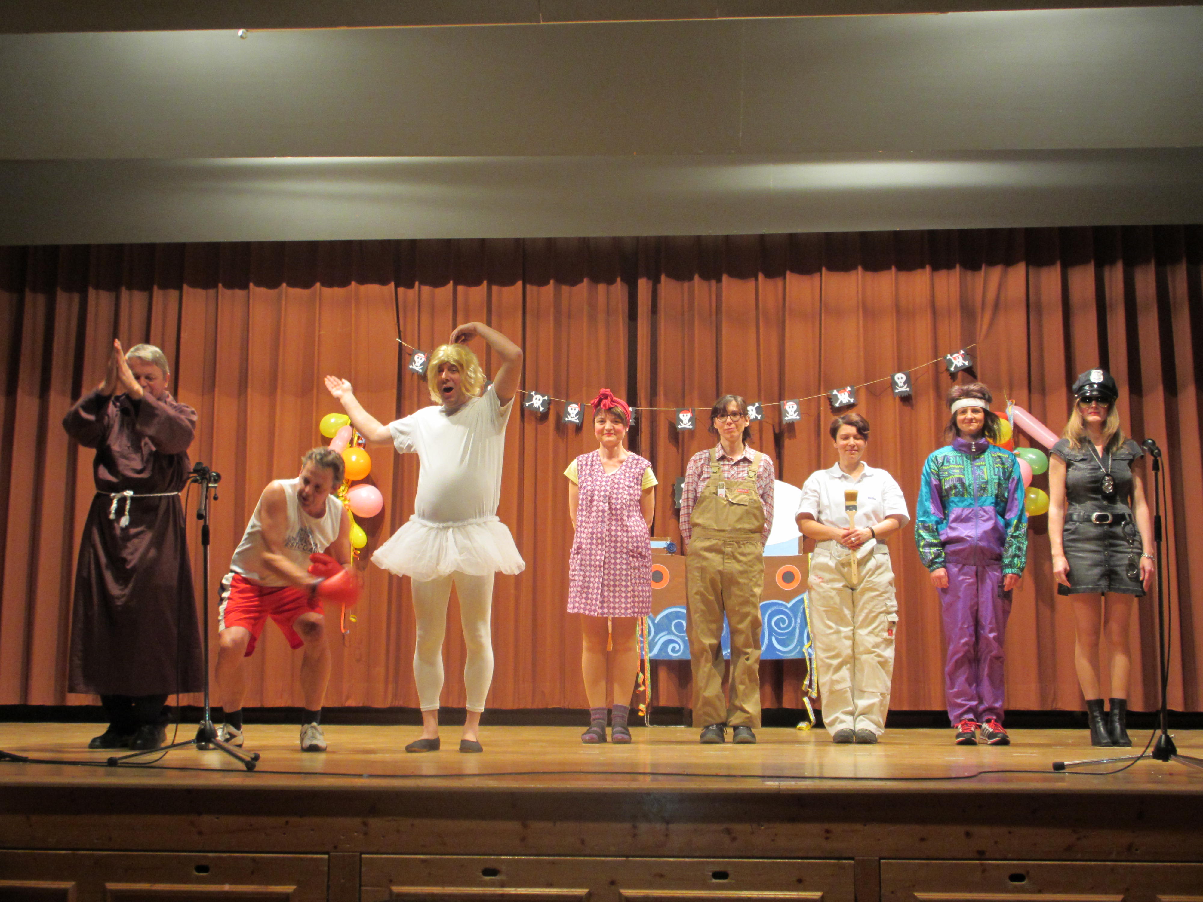 Premiere hatte das neue Festkomitee des Kirchengemeinderats Laudenbach beim diesjährigen Faschingsabend in der Zehntscheune Laudenbach. Waldemar Link begrüßte Pfarrer Burkhard Keck, den Ortsvorsteher Martin Rüttler mit Ehefrau, den 2. Vorsitzenden der Kirchengemeinde Niederstetten Herrn Dr. Adalbert Ruhnke mit Ehefrau, Pfarrer Günther Appold sowie die Gäste aus Laudenbach und Niederstetten. Mit dem Motto “Genieße das Leben in vollen Zügen” startete das Programm mit den Kinderkirchenkindern und ihrem Piratenshowtanz. Einstudiert von Conny Ulshöfer und Andrea Öchsner zeigten die Kinder in ihren tollen Kostümen was Piraten so alles können. Ist das nicht der Kirchenchor, steht dem nicht ein Engel vor, moderierte Rainer Mühleck den musikalischen Auftritt des Kirchenchores an. Mit der Einlage “Ein bisschen Weisswein …” auf die Melodie von “Ein bisschen Frieden” sang das Publikum den Refrain gemeinsam mit der Gitarrenbegleitung von “Nicole” Monika Öchsner begeistert mit. Schrill, fetzig und voller Power war dann der Auftritt der TSV-Jugend mit der Musik “The Time Warp” aus dem Musical Rocky Horror. Vroni Leifeling und Leonie Wirth verstanden es, sowohl die kleinen als auch die größeren Jugendlichen perfekt in Szene zu setzen. Ihr fehlt es an Länge und Breite, jedoch ist Sie eine kleine Frau mit großer Klappe, war die Vorstellung der Büttenrednerin Hilde Zenkert. Themen aus der großen und kleinen Politik verstand sie von der Flüchtlingskrise, Kanzlerin als starke Frau, VW-Abgasskandal, Lebensmittelpreise, Scheinwerfertage in der Kirche, Windräder, Landtagswahl bis zu den Stühlen in der Zehntscheune auf den Punkt zu bringen. Der Applaus des Publikums war der Dank für diese überzeugende Büttenrede der Frau, die ihren Mann durch eine “Kleinanzeige” gefunden hat. “Festgans” Christl Link hatte in diesem Jahr, mit ihrer stummen Festgansbegleitung, ihren musikalischen Soloauftritt. Vortrefflich erzählte sie z.B. das Ortsgeschehen vom Ausflug des Kirchenchors, dem Dreigestirn der Kirche, dem Weikersheimer Hallenproblem, der neuen Kelterhallentreppe, dem grünen Gassenbach als auch dem geknackten Email-Account, was vom Publikum jeweils begeistert mit “Jawoll” bestätigt wurde. Dass Ministrant sein durchaus interessant, abwechslungsreich, als auch spaßig sein kann, erzählten die Mini`s Karla Kraft und Antonia Muhler. Auf humorvolle Art und Weise gaben sie bei ihrem Auftritt einen tiefen Einblick in das Ministrantenjahr und erzählten so allerlei lustige Geschichten über die Geschehnisse im Laufe eines Jahres. Als Wengerter stieg dann noch Waldemar Link in die Bütt. Mit Geschichten von seiner Frau, dem Whirlpool des kleinen Mannes, den politischen Weinflaschen und mehr hatte auch er die Lacher auf seiner Seite. Mit dem sportlichen Auftritt der Gruppe von Monika Öchsner “Wenn ich nicht auf der Bühne wäre …” zeigte sich wer Kondition bis zum Ende hat und wer nicht. Eine feste Größe beim Fasching der Kirchengemeinde waren auch die MGV-Aktiven. Moderiert von Michael Öchsner wurden zahlreiche, neue James Bondbewerber bis ins persönliche Detail auf dem Laufsteg vorgestellt. Mit dem Song “Skyfall” und der musikalischen Soloeinlage von Bondgirl Sylvia Baumann zeigten die Männer was sie sonst noch drauf haben.