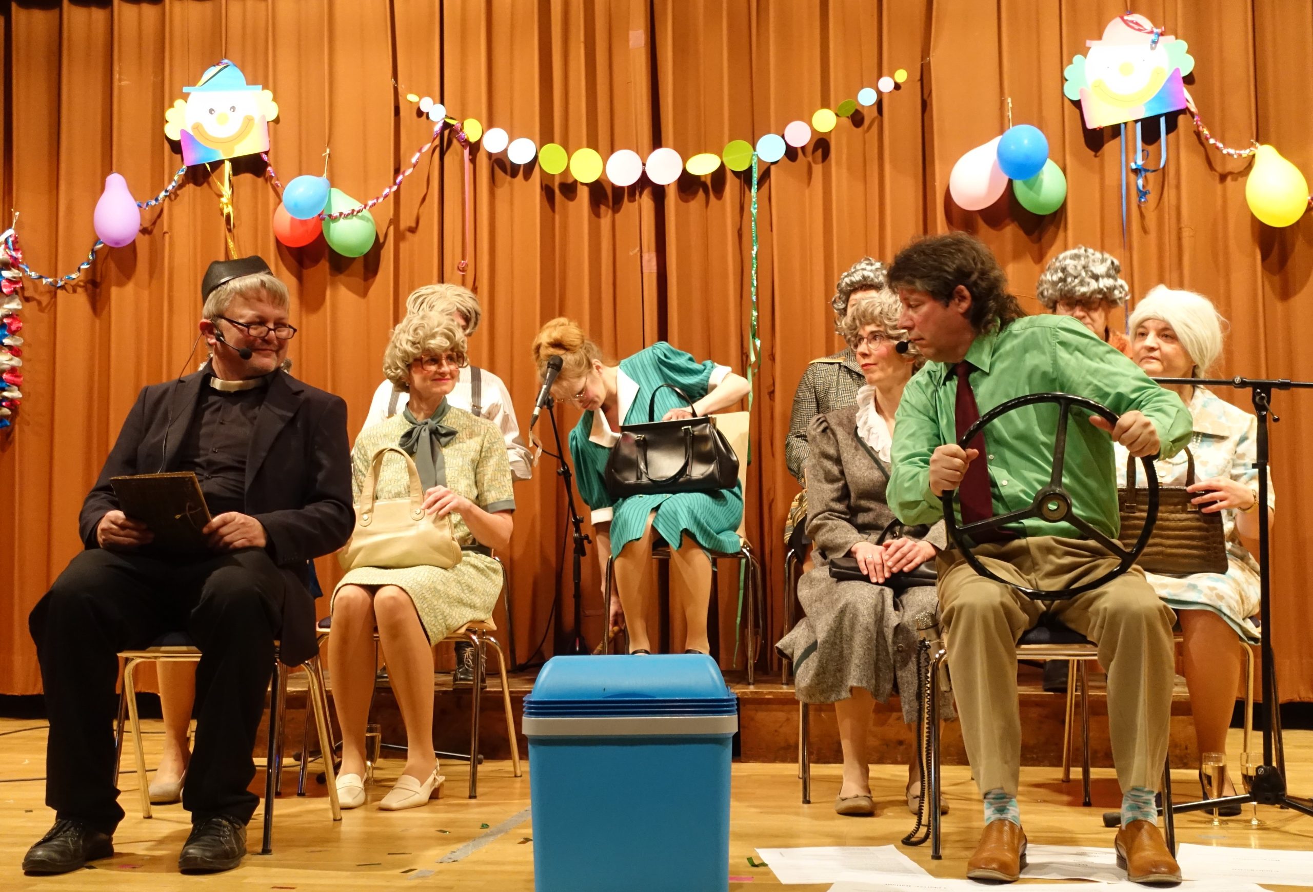 Seit vielen Jahren einer der Höhepunkte beim Kirchenfasching ist die Gruppe Margaretas. Wie bekannt, gibt es auf einer gemeinsamen Busfahrt viel zu erzählen und jeder weiß was und berichtet über die letzten Neuigkeiten, die geschehen sind. Der fehlende göttliche Segen für die neue Brücke in Haagen mit dem Nepomuk hinter Gitter, außerdem scheint es in Laudenbach viele schwarze Schafe zu geben, da manchmal drei Priester den Gottesdienst zelebrieren, Klimaaktivisten, die Einladungen zum Gemeindenachmittag, das Gelände für den KKC Kinoabend und vieles mehr waren Themen beim Gemeindeausflug. Gemeinsam sang man mit dem Saale das Schwester Richaria Lied „Aram sam sam“. Busfahrer Matthias meinte am Ende des Tages, dass das Trinkgeld ja nur ein Schmerzensgeld ist für den schlimmsten Tag im Jahr.