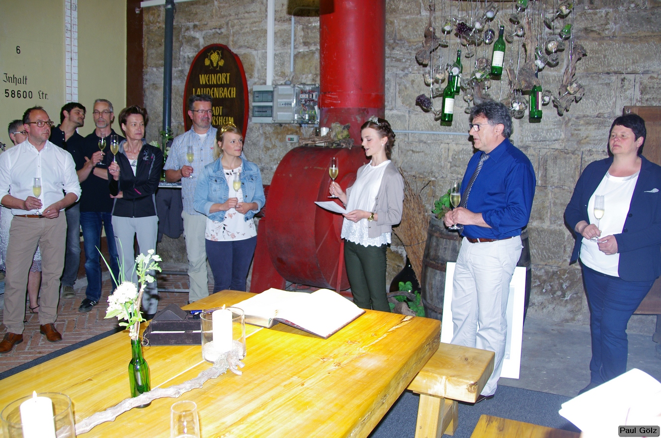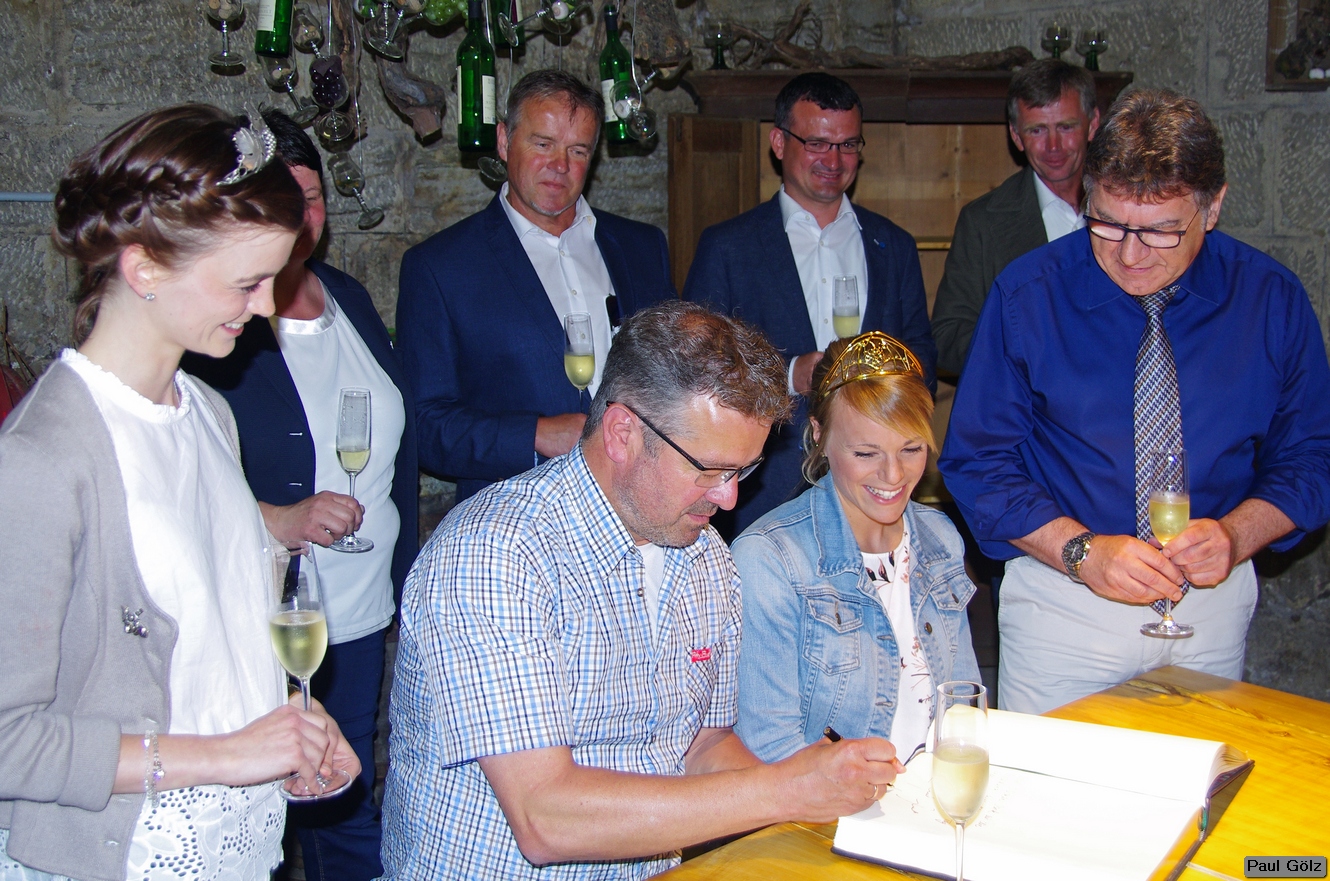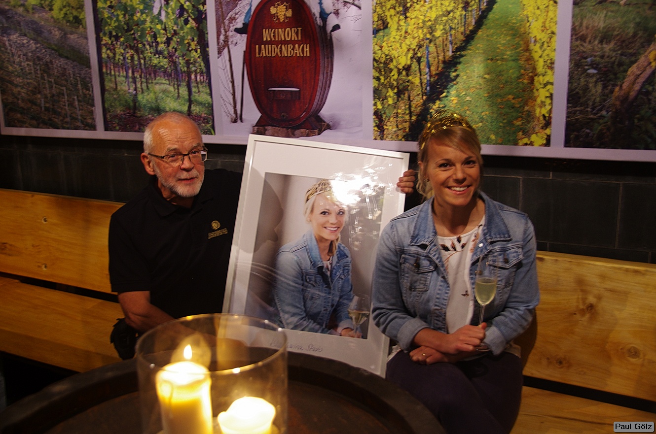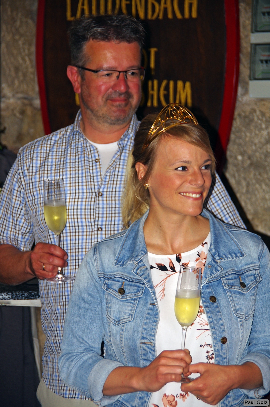 Markelsheims Weinkönigin Ann-Kathrin Schmitt hatte die Ehre, die 69. Deutsche Weinkönigin Katharina Staab aus Oberhausen an der Nahe vom Weinbaugebiet Nahe (Rheinland-Pfalz), den Redakteur, Moderator und Buchautor Manuel Andrack und die Geschäftsführerin des Deutschen Weininstituts (DWI) und der Deutschen Weinakademie (DWA), Monika Reule, in Empfang zu nehmen. Andrea Büttner war immer noch überglücklich, dass Laudenbach zu den zwei Gewinnern des vom Deutschen Weininstitut ausgelobten Wettbewerbs gehörte. Für sie sei es ein „kleines Dankeschön“ an all die Betriebe, die sich in den vergangenen Jahren am Weinerlebniswochenende beteiligt hätten.