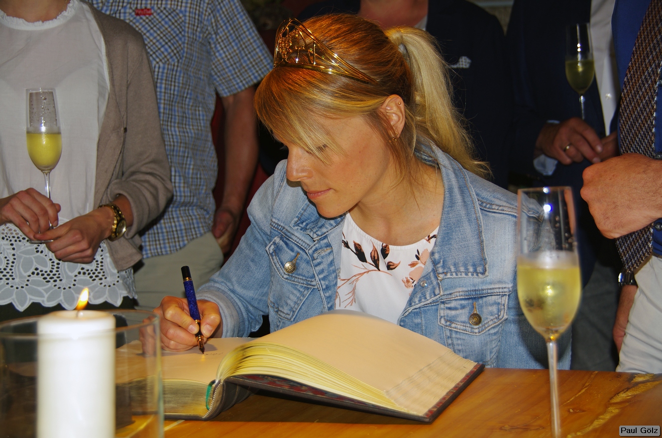 Der „Hauptgewinn“, wie sich die Weinkönigin selbst bezeichnete, war auch ganz begeistert von ihrem Ausflug ins Vorbachtal. Neben dem sehr netten Empfang, den schönen Unterhaltungen mit den Leuten und tollen Weinen habe sie auch noch einiges gelernt, meinte sie abschließend: Das Thema Muschelkalk hier im Vorbachtal und die Rebsorte Tauberschwarz waren ihr noch nicht so bekannt, wie sie zugab. So ging nicht nur für die Gäste, sondern auch für die Ehrengäste und den Veranstalter ein in jeder Hinsicht herrlicher sonniger Tag zu Ende.