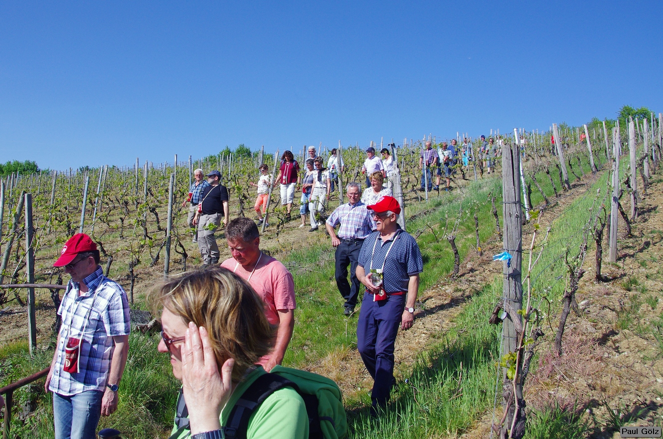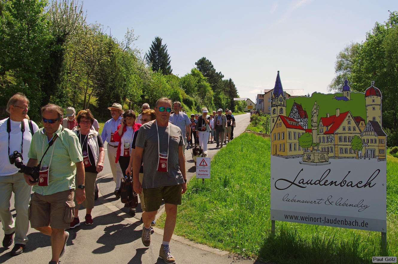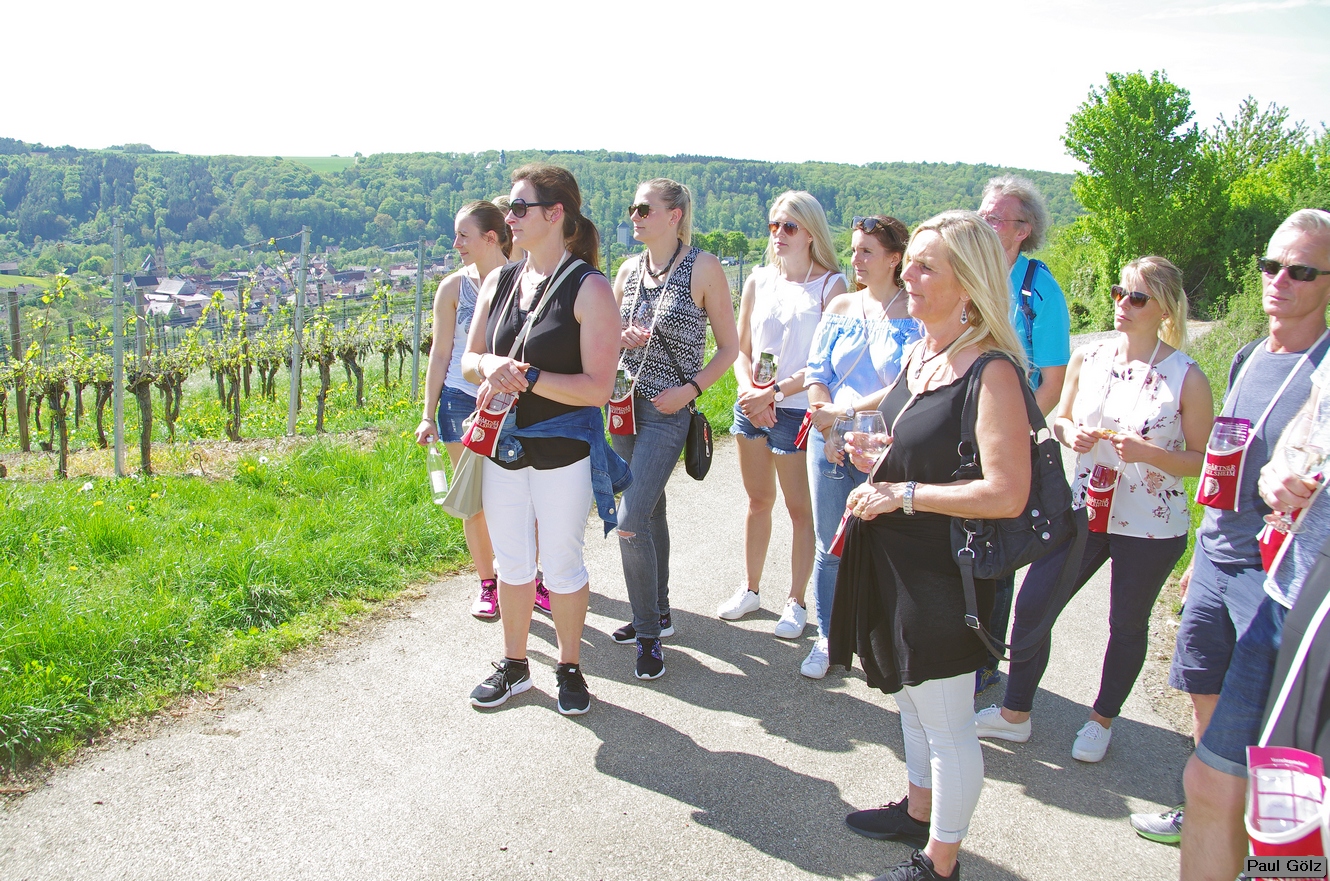 Knapp über 400 Weingäste hatten sich an der Treppe des Laudenbacher Schlosses eingefunden, um sich nach der musikalischen Begrüßung des Männergesangvereins Laudenbach sowie durch Andrea Büttner vom Organisationsteam und Ortsvorsteher Martin Rüttler auf die gut sechs Kilometer lange Wanderung zu machen. 13 örtliche Führer führten die Gruppen in einem Rundgang durch die Weinberglagen Ghäuberg und Schafsteige.